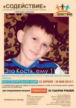 Благотворительная акция с 13 ноября 2011 года по 13 января 2012 года. Собрано 77864,52 рубля, потрачено на лекарства, проезд к месту лечения, канцтовары и учебники 26559,30 рублей.