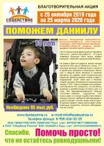 В связи с невыполнением ряда условий (предоставление заведомо неверной информации) представителями ребенка, средства, собранные в результате проведения акции переведены на лечение других подопечных Фонда детей-инвалидов.